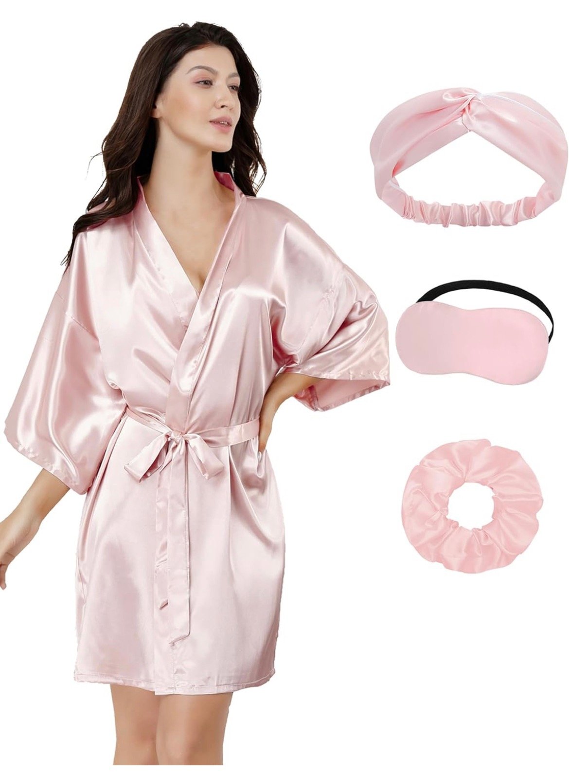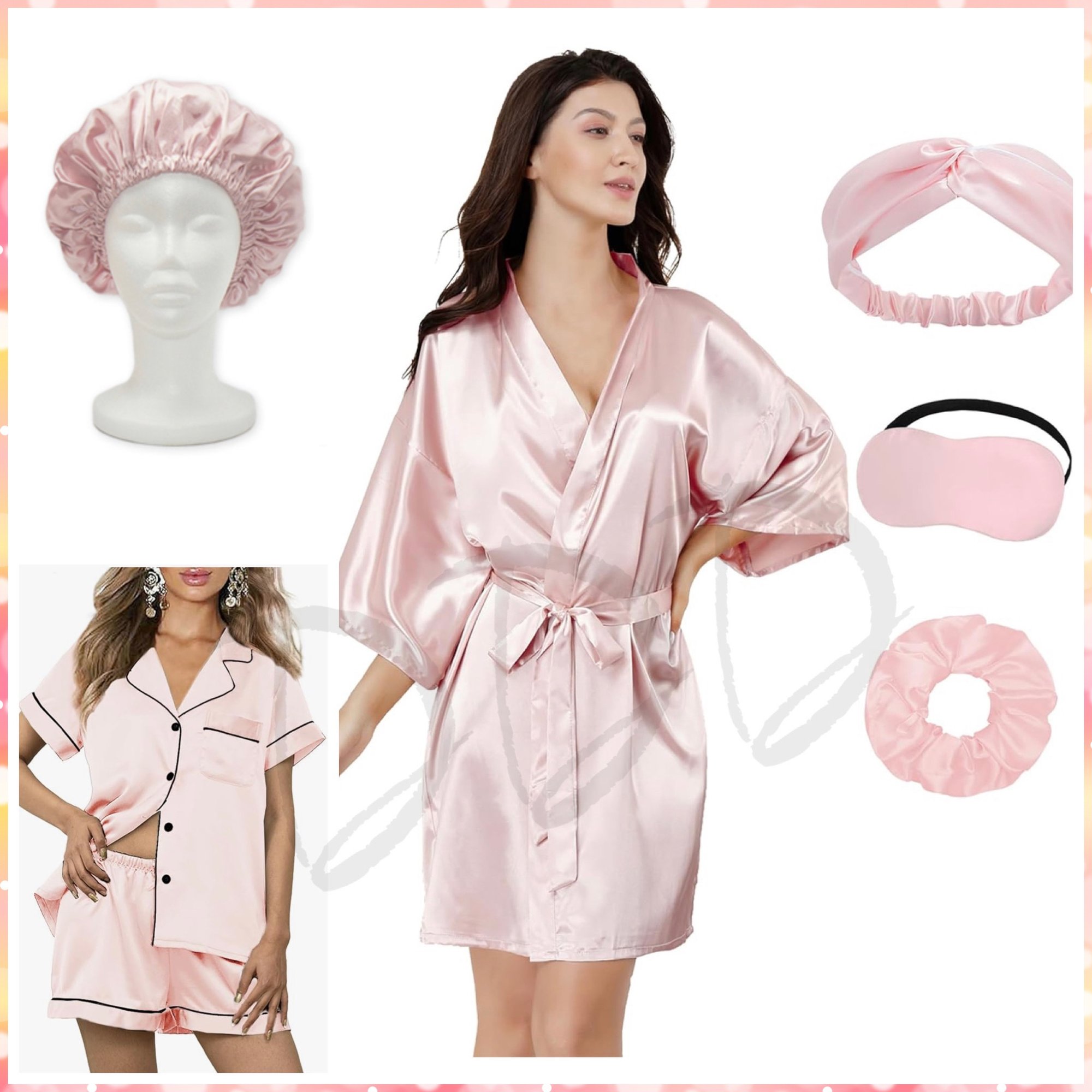 •2pc Satin Pjs•Bonnet•Robe•Mask