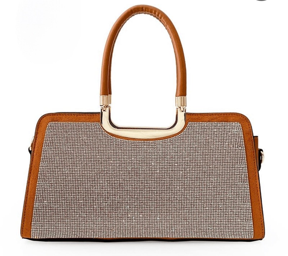 Brown Big Handle-Diamond Glitter Crossbody Luxury Handbag